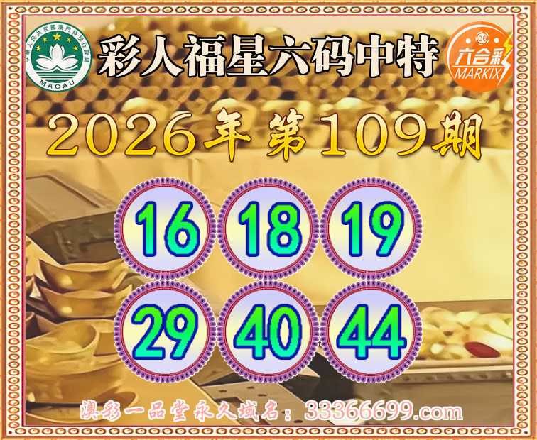 109期:〖彩人福星〗 六码中特16.18.19.29.40.44】开:16