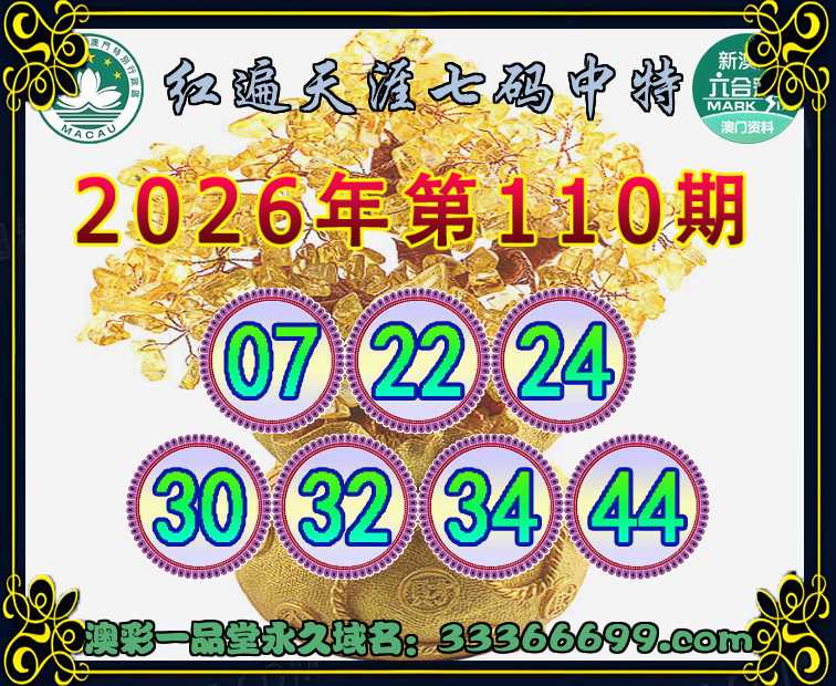 110期: 『红遍天涯』 七码中特【07.22.24.30.32.34.44】开:30