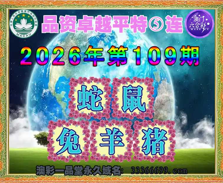 108期: 品资卓越 平特⑤连【猴龙蛇羊猪】开:狗45